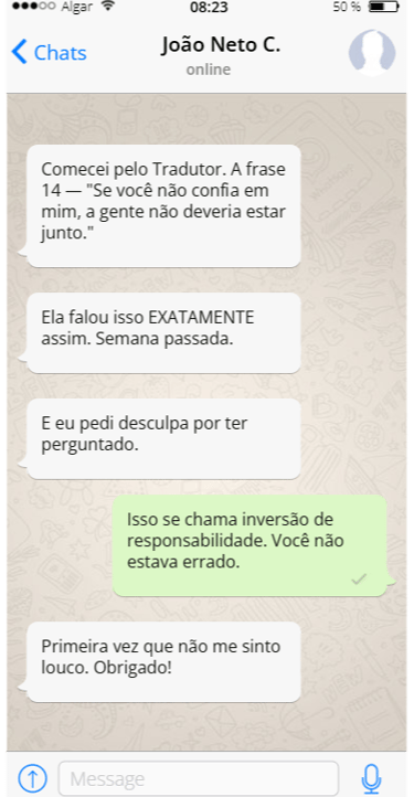 "É coisa da sua cabeça." "Somos só amigos." "Se você não confia em mim, a gente não deveria estar junto." Você já ouviu pelo menos uma dessas. Este guia decodifica 37 frases comuns e revela o que está por trás de cada uma — com o significado real e a resposta certa pra manter o eixo. Ferramenta de consulta rápida. Use hoje à noite.